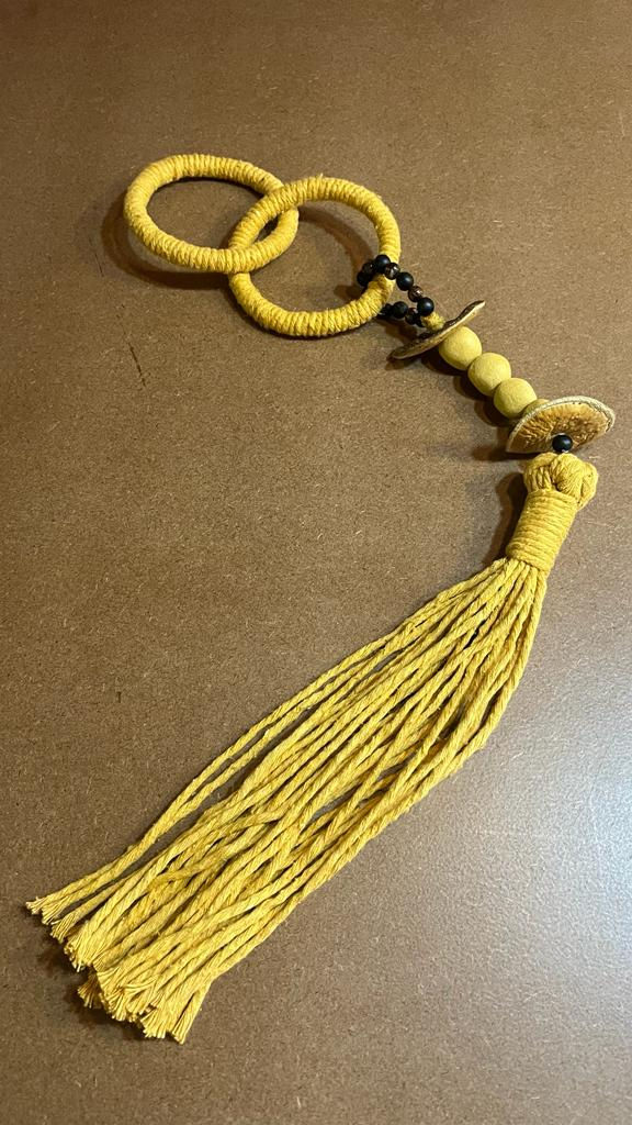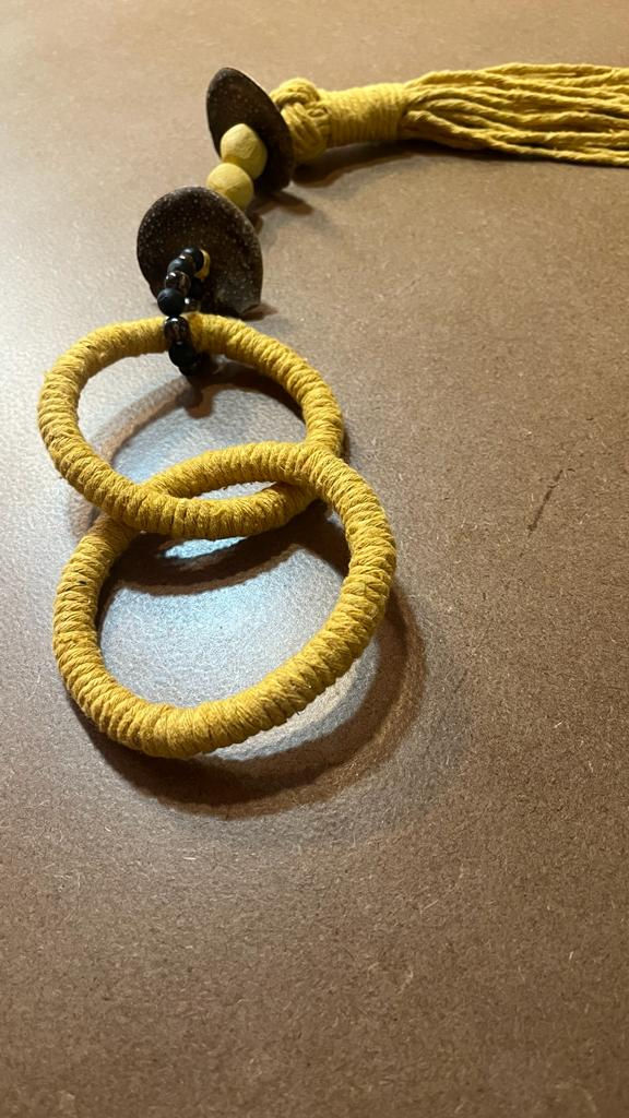 Material: Fio de Algodão, Semente de Açai, Sementes de Sabãozinho, Casca Pererão e Concreto.