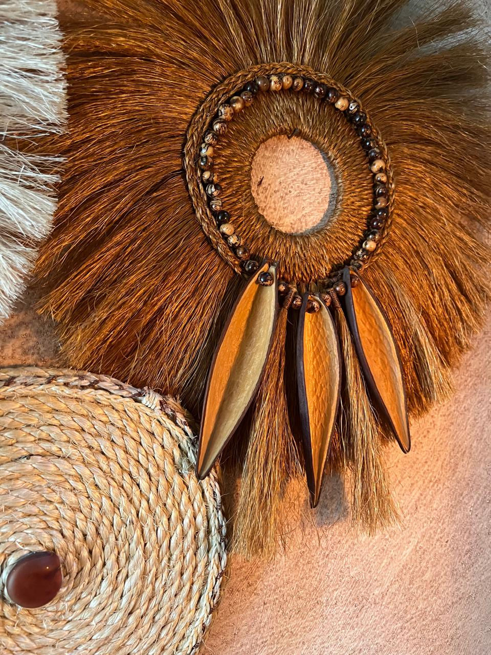 1 Boho G, Sisal Ferrugem com Sementes de Açai e Canoninha, 39cm de diâmetro