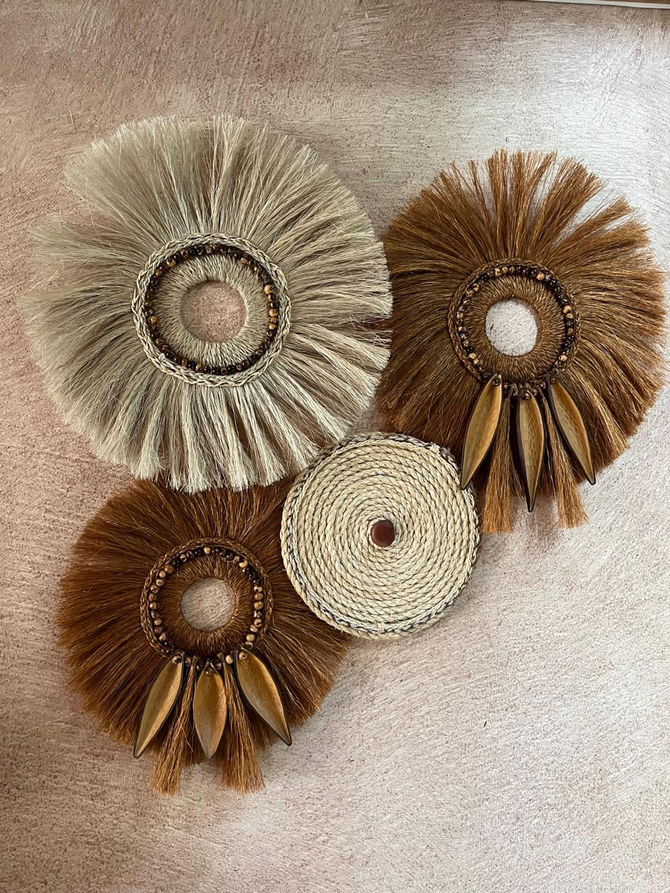 1 Boho P, Sisal Natural com Sementes Olho de Boi, 23cm de diâmetro